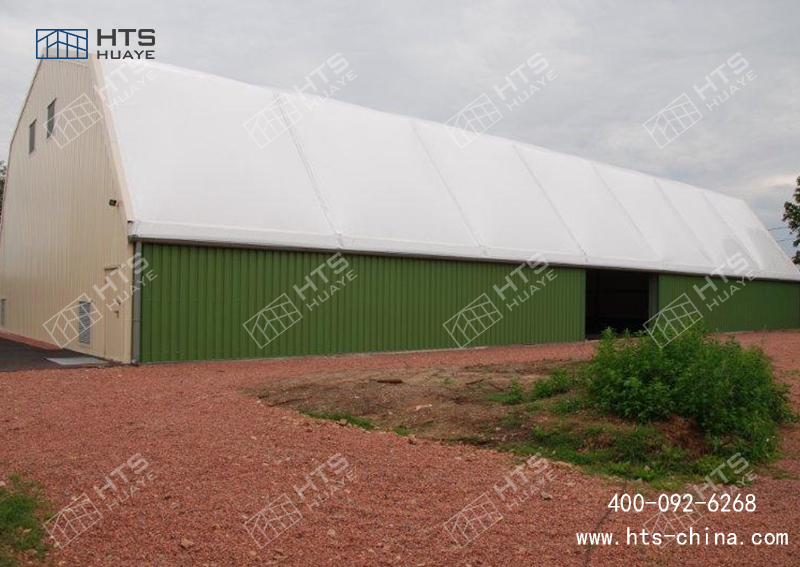 這種工業大棚框架采用鋁合金結構和PVC材質篷布搭建,整體采用模塊化搭建方式,施工不受地面限制,無需復雜地基處理,能夠節省大量的時間和費用,及時解決企業的使用需求。