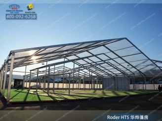 華燁大型展棚的跨度為3米至80米。由于采用了模塊式構建系統,可根據要求將篷房的單元距離擴大至5米。
