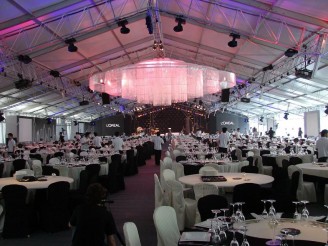 華燁在創(chuàng)建會議篷房時,絕不會在照明概念、空調(diào)和配套設(shè)施問題上妥協(xié):營造最理想效果的日光、用于演示的昏暗氛圍的設(shè)施、舒適的室內(nèi)空調(diào)、不同的座位配套設(shè)施、指揮臺和舞臺、餐飲用附加配套設(shè)施等。