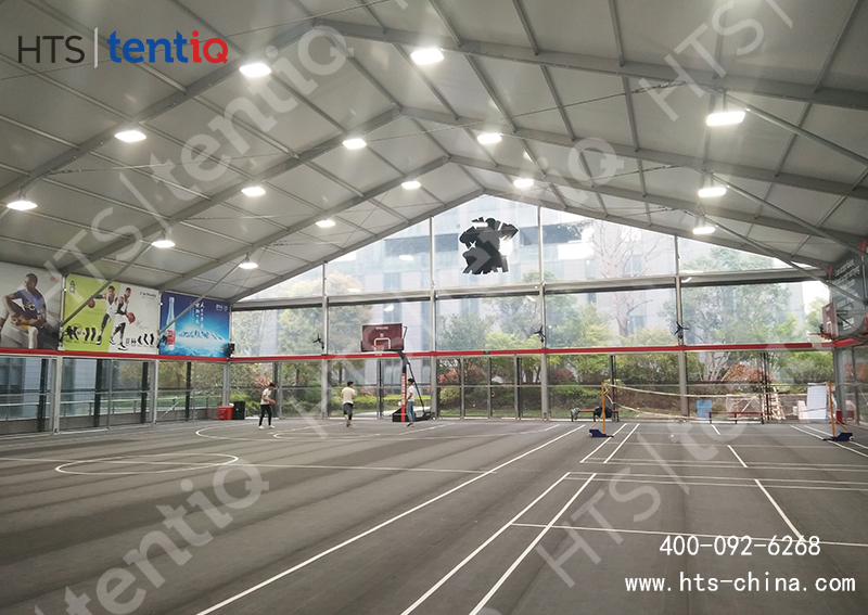 從球館臨時篷房本身來說,其模塊化,安全,耐用的特性都非常適合體育場館的建設,采用篷房做為體育館,不僅場地利用率高而且性價比也非常高,可做為中短期或半永久場地使用。