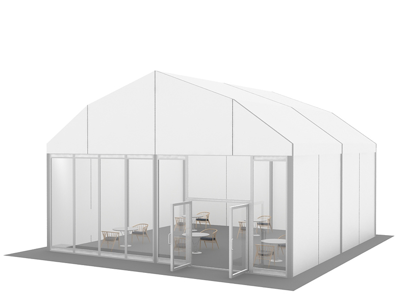 *在篷房配套上,華燁篷房廠家可提供地板、玻璃門、各種墻體。還有篷房專用空調(diào)、地毯、燈飾、承重盤、排水槽等等,也許您的需求可能與上圖所示不同,請直接聯(lián)系我們,了解此結(jié)構(gòu)可用的配件。