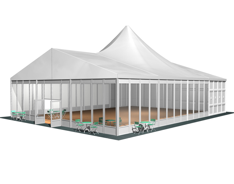 *在篷房配套上,華燁篷房廠家可提供地板、玻璃門、各種墻體。還有篷房專用空調、地毯、燈飾、承重盤、排水槽等等,也許您的需求可能與上圖所示不同,請直接聯系我們,了解此結構可用的配件。