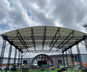 這座框架采用桁架結(jié)構(gòu),高度可調(diào)節(jié),最高可以升高到14米,并且強(qiáng)度大大增強(qiáng)。屋面鋁合金篷房設(shè)計(jì),大大減輕了屋面重量,搭建起來省時(shí)省力。現(xiàn)場共搭建了2座,1座篷房寬度為44米,長度為46米,3天搭建完畢。另外一座為寬度為23米,長度34米。客戶主要是用來舉辦嘉年華活動(dòng),游樂場,或者樂隊(duì)唱跳舞臺來使用。